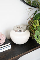 Material: High-quality alloy with a polished white finish and silver top for a refined, luminous appearance