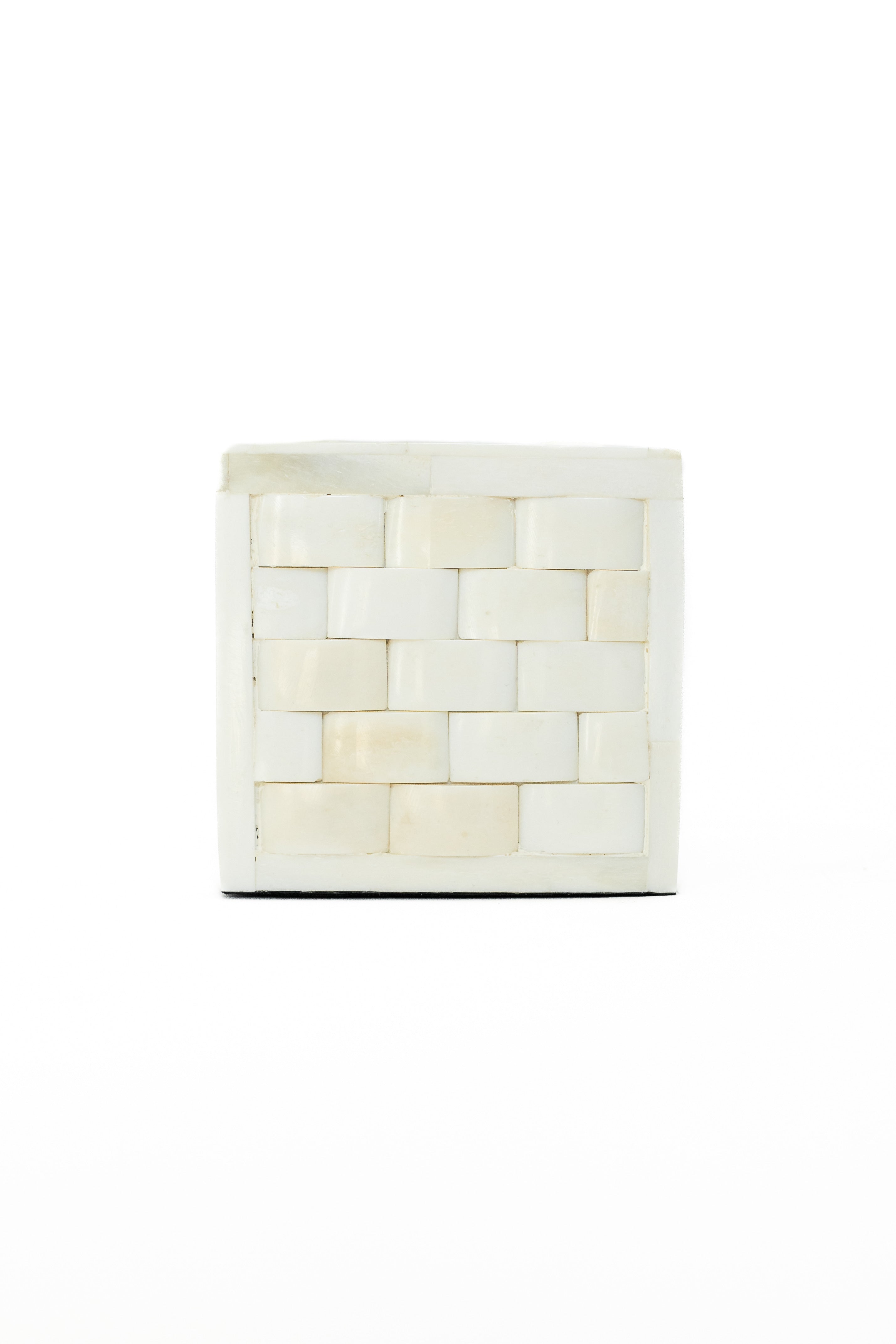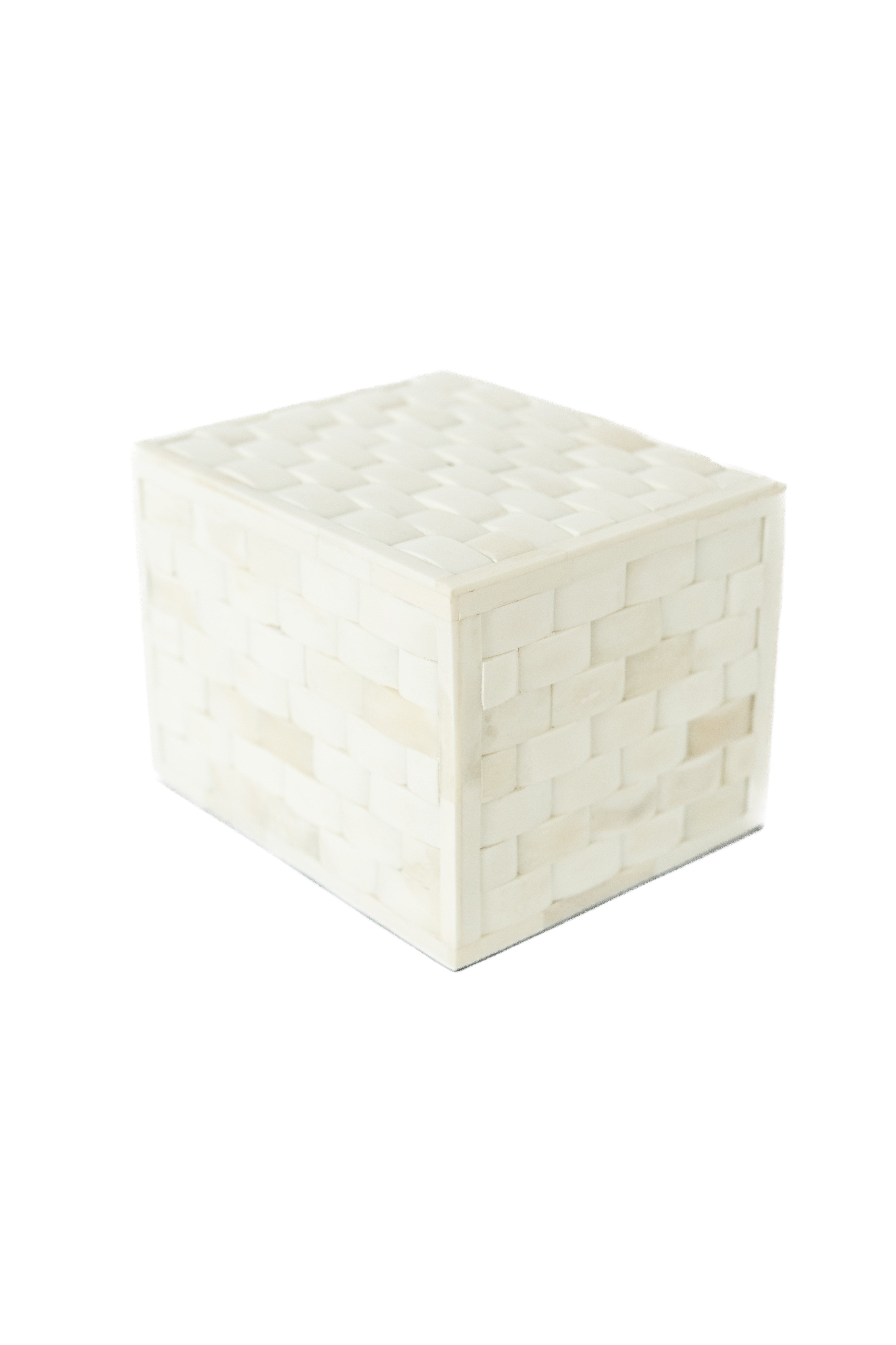 • White basket weave bone inlays over a wooden box
